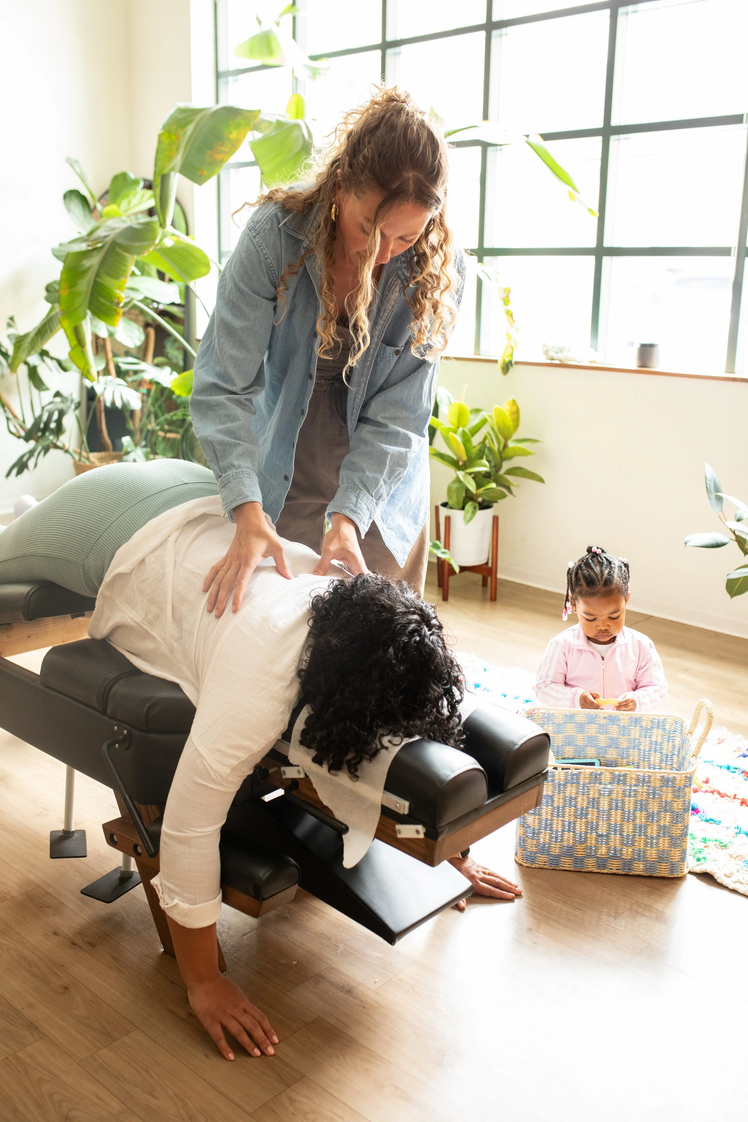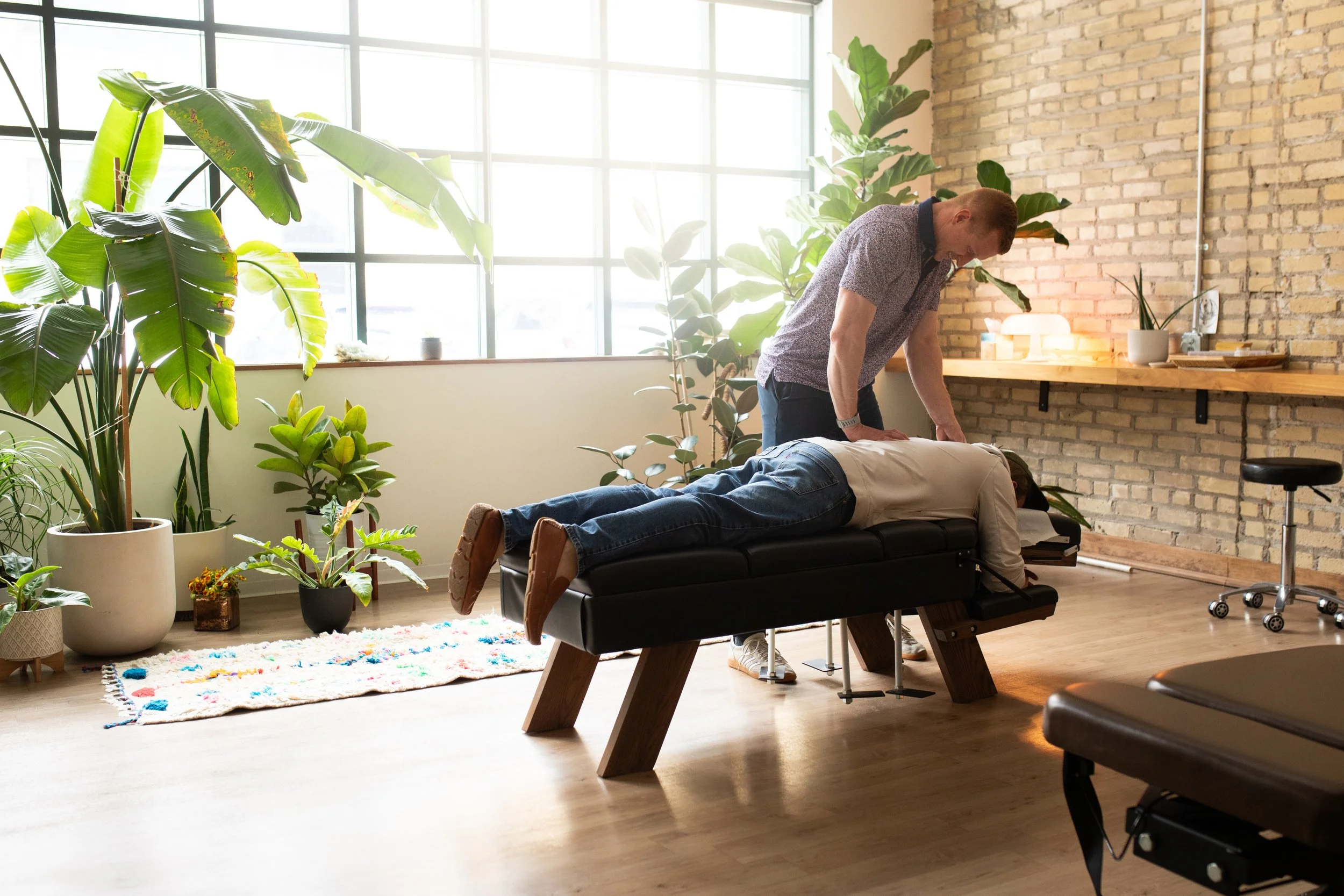 Spinal manipulation (adjustment) and soft tissue therapy. Benefits include nervous system regulation, improved range of motion, decreased pain, improved posture, mobility increase, better function.